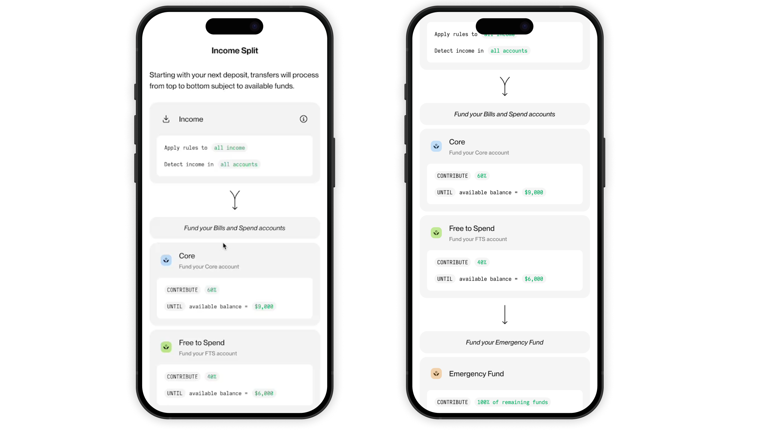 Your Income Split is the automation that connects your plan to real action. When your paycheck hits your core account, Fruitful automatically divides it according to your personalized Money Map:
